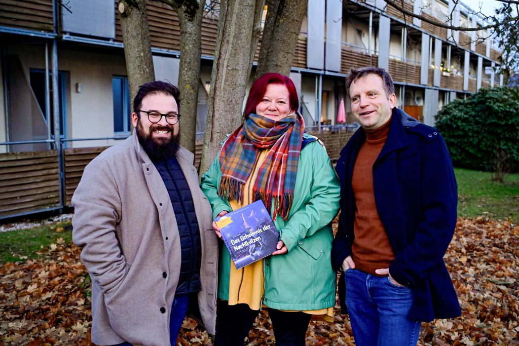 Als die Nachricht vom ersten Platz im Märchenwettbewerb bei Antje Trapp ankam, sei sie erst einmal aus dem Häuschen gewesen. „Nach der Einsendung habe ich eine ganze Weile nichts mehr gehört und hatte den Gewinn schon fast abgeschrieben“, sagt die gelernte Krankenschwester. In ihrer Titelgeschichte verarbeitet sie persönliche und berufliche Erfahrungen. „Ich arbeite schon mehr als 20 Jahre mit Antje zusammen und bin stolz darauf, dass sie mit ihrer Geschichte den Chemnitzer Märchenwettbewerb gewonnen hat“, sagt Dirk Schellenberger, Geschäftsführer der Pflege mit Herz GmbH. Verleger Christian Wobst und Herausgeber Marcus Lehmann hatten zur Pressekonferenz ganz bewusst in die Räume des Unternehmens eingeladen. „Antje Trapp zeigt mit ihrer Geschichte eindrucksvoll, wie wichtig auch für ältere Menschen die Beziehung zu Tieren ist. Ich freue mich sehr, dass wir diese Botschaft mit dem Märchenbuch jetzt auch an die jüngste Generation weitergeben können“, sagt Verleger Christian Wobst.